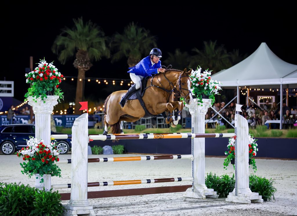 “This is the third jump off he’s made in a row at 1.60m, so hopefully we’re developing some consistency,” said Vale of Carissimo 25, a 12-year-old Holsteiner gelding owned by the Carissimo Group. “The horse has all the ability, and I feel like we’re really starting to get some consistency. I was a bit early in the jump off, so I was pretty good at the beginning. In hindsight, I’d like to take a little more chance at the second to last, but I left the ring as the leader and only one of them beat me, so we got to say it was a good night!”