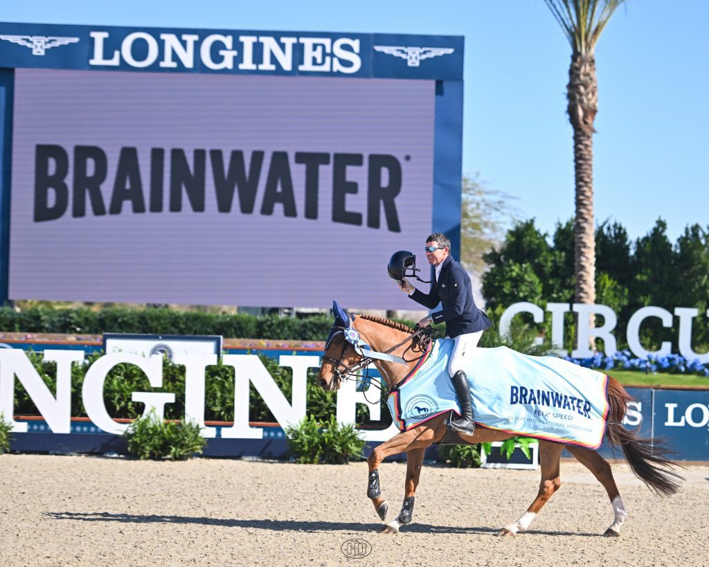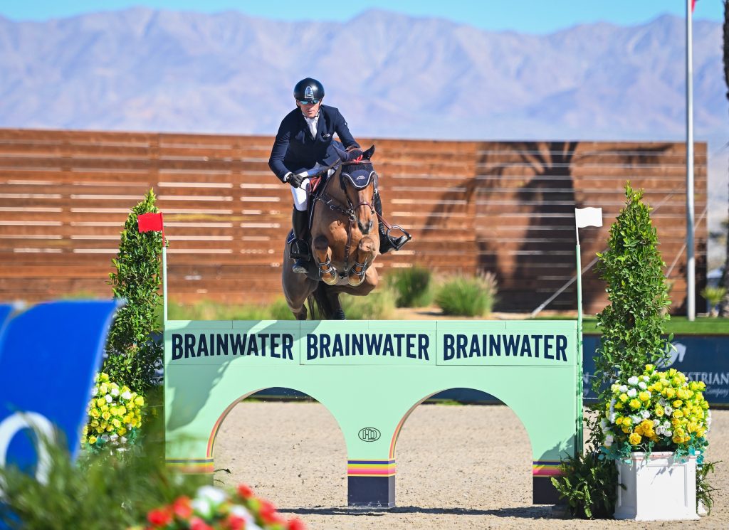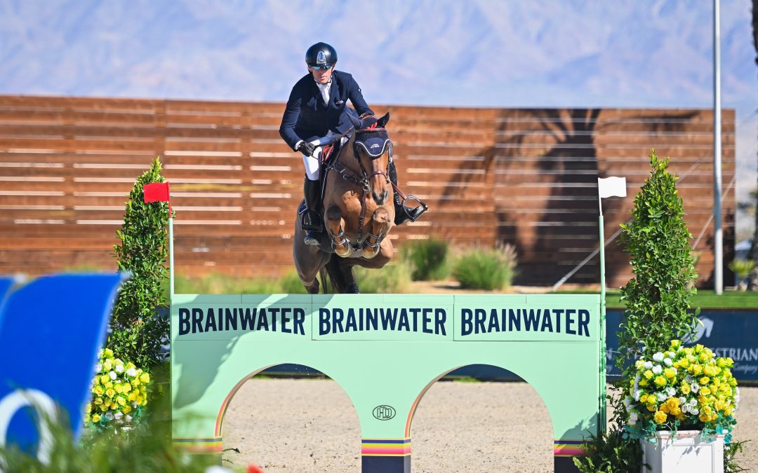 Thermal, Calif. – The first to go was the best to go in the $32,000 BRAINWATER CSI2* 1.45m Speed Stake, with Ireland’s Conor Swail and Theo 160 taking home the win on Thursday, January 29, at Desert Circuit 4, presented by La Quinta Resort & Club.
