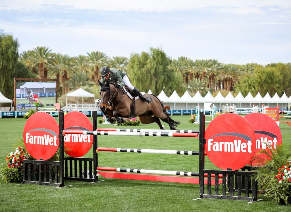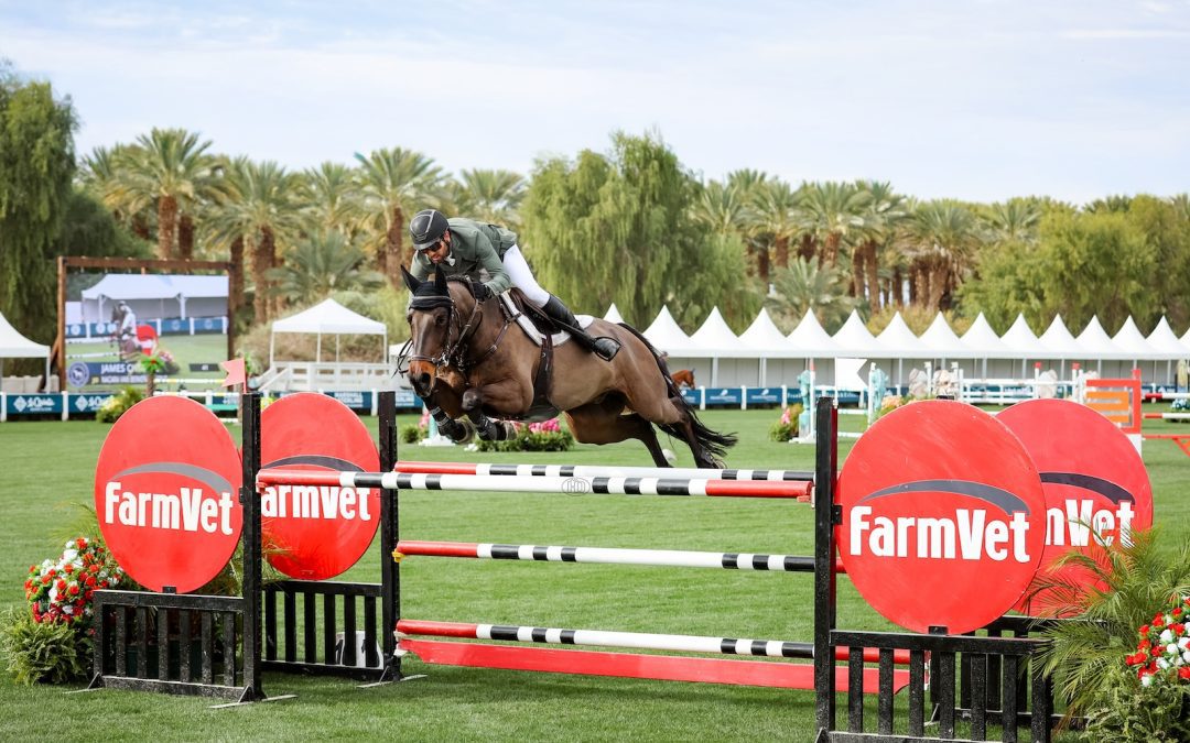 Thermal, Calif. – Fresh off a victory in Desert Circuit 5’s Welcome Speed, James Chawke and Nacara van Berkenbroeck Z returned to the Grass Field at Desert International Horse Park to make it two in a row with a win in the $30,000 FarmVet 1.45m Open Classic.