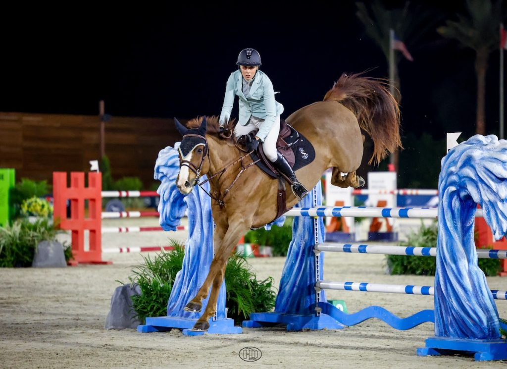 “He hasn’t been staying with me in my stables, so it’s kind of fun to have him back in my string for a little bit!” said Sailor of the horse bred by Three Wishes Farm in California. “He’s a super fun horse. He has a lot of heart and a lot of game. He hasn’t jumped this height in a little bit…I’m super proud of him to be able to step out here under the lights; it’s been a minute, and for him to have so much success out here, I’m just so proud of him. He has all the heart and all the desire for this sport which is what makes my job really fun.”
