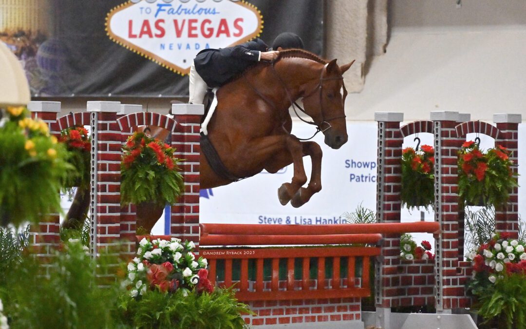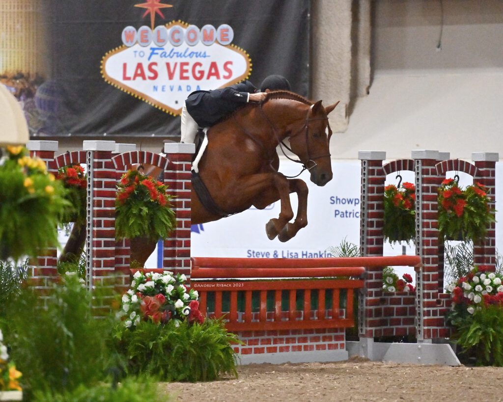 Moberg describes the 7-year-old Belgian Warmblood as a trustworthy partner at the atmospheric South Point Arena. “He is so brave,” she said. “A lot of horses are spooky in indoor venues, and he’s just so brave. I know I can always trust him to take me to the other side.”