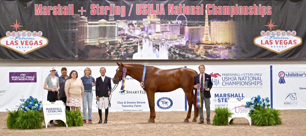 LAS VEGAS – Three new green hunter champions were crowned on November 12, 2025, at the Marshall+Sterling/USHJA National Championships, held at the South Point Hotel, Casino & Spa in Las Vegas. Fresh off Tuesday’s $25,000 USHJA National Hunter Derby win, John French and Valentino BF captured the Grand Green Hunter title as riders across all green hunter classes competed for a total of $17,000 in prize money.