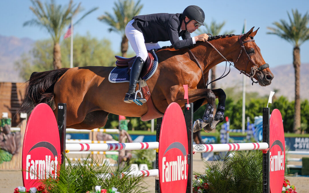 THERMAL, Calif. – With an Olympic silver medal to their names, it may come as no surprise that Karl Cook and Caracole de la Roque made winning the $30,000 FarmVet 1.45m Classic look easy on Thursday, November 6, at Desert International Horse Park.
