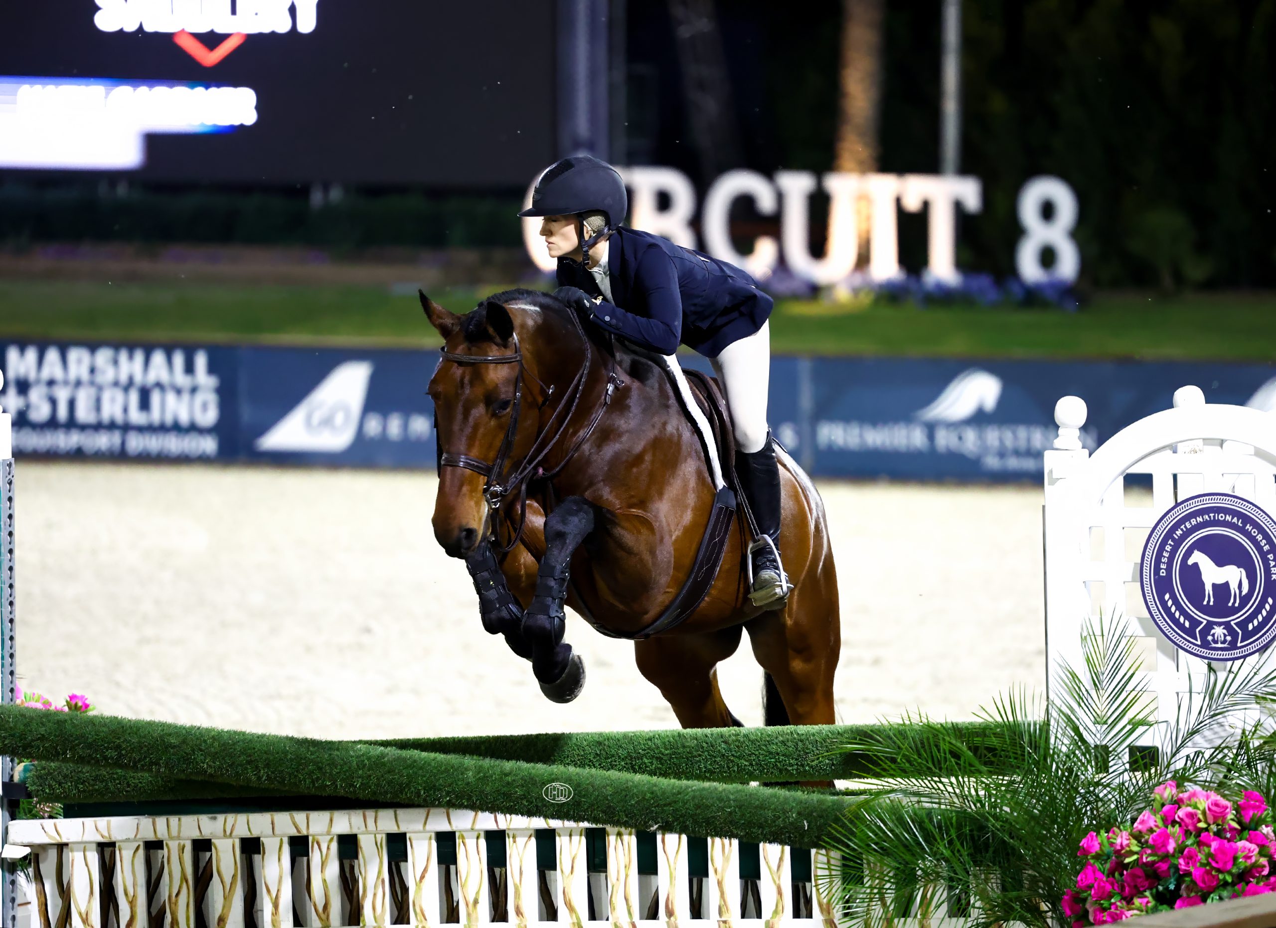 On Friday, Gardner kept going up the ranks through three rounds of competition in DIHP’s Grand Prix Stadium. A field of 45 professionals took on the first-round equitation course, designed by Archer Bailey, on Friday afternoon. Then, the top 12 riders were invited back on a clean slate for a second round under the lights on Friday night. From there, the top four competitors switched horses for a final test phase.