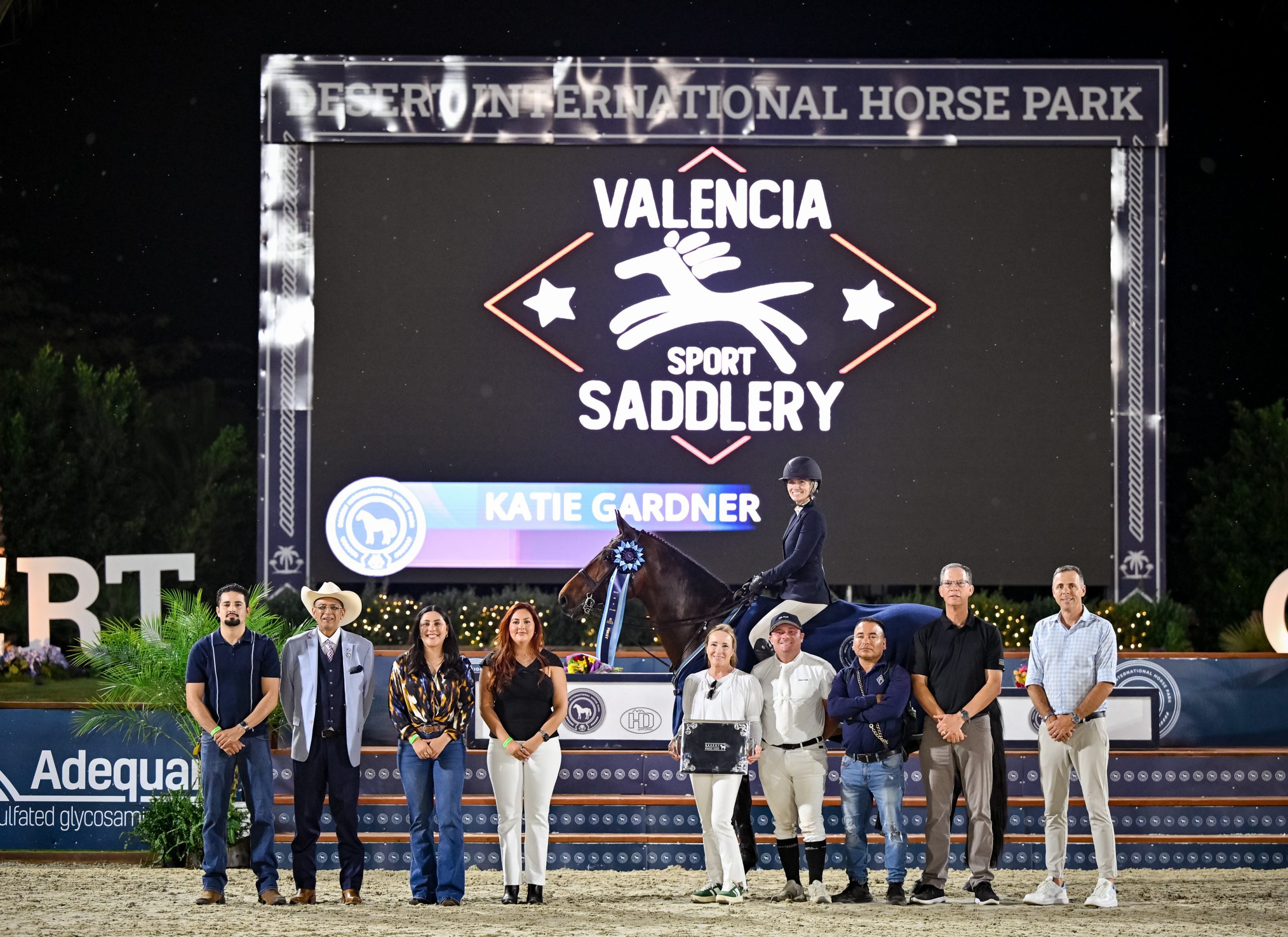 Katie Gardner was presented as the winner of the $100,000 DIHP 3’3” Pro Equitation Challenge, presented by Valencia Sport Saddlery. Photo by High Desert Sport Photo
