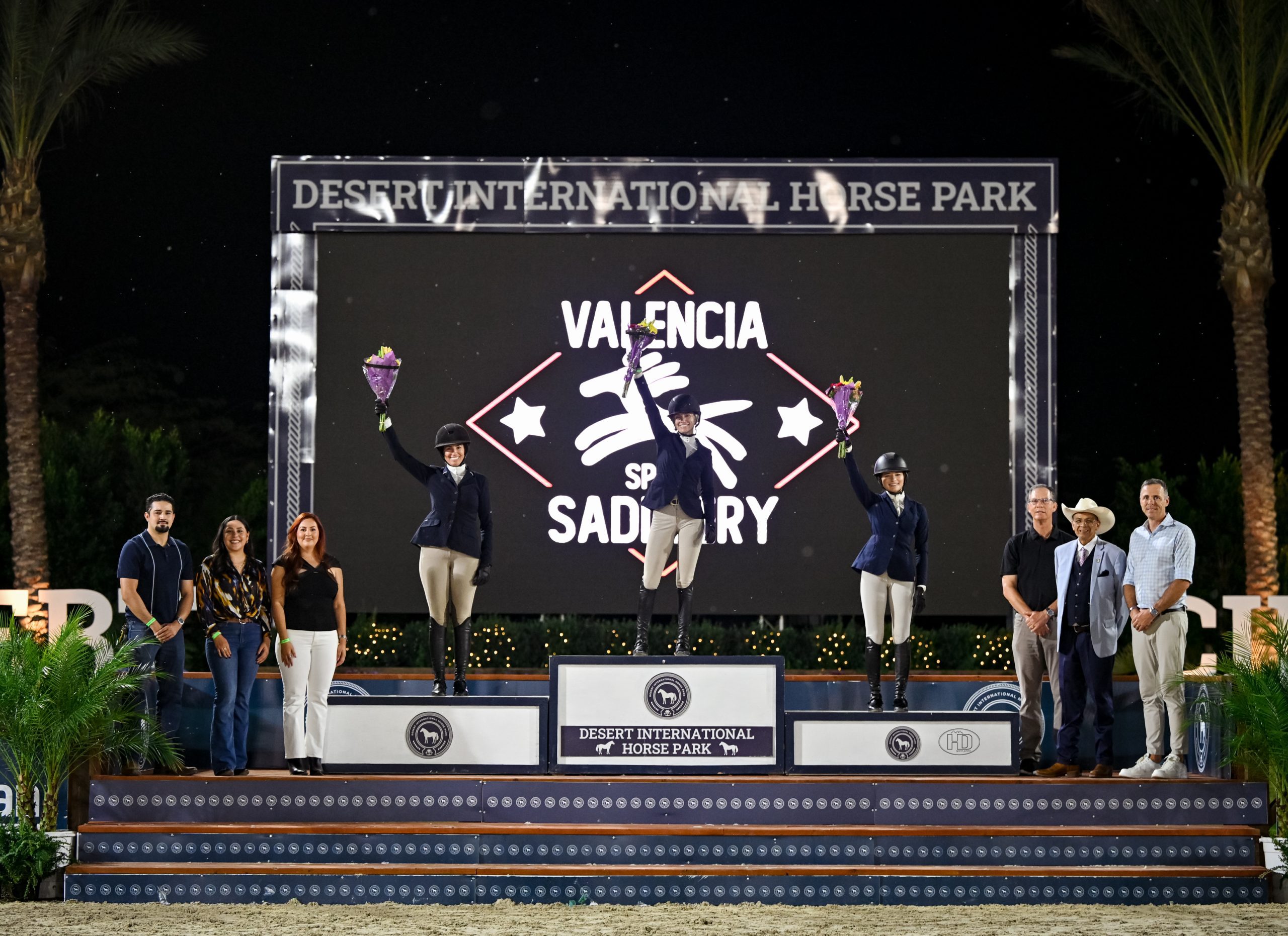 Katie Gardner, Nicole Bourgeois and Juliette Joseph took the top three spots in the $100,000 DIHP 3’3” Pro Equitation Challenge, presented by Valencia Sport Saddlery. Photo by High Desert Sport Photo