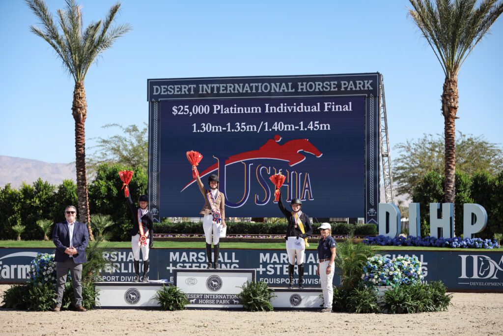 THERMAL, Calif. – Twenty-one athletes from Zones 8, 9 and 10 took to Desert International Horse Park’s National Sunshine Series 1 for the Markel/USHJA Platinum Jumper Championships – West, held October 30–November 2. Riders contested a combined 1.30/1.35m and 1.40/1.45m section for both team and individual honors.