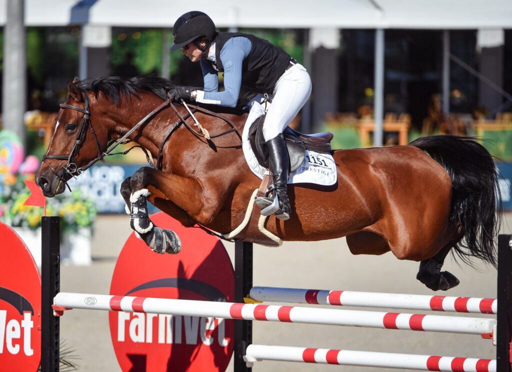 After notching numerous victories in DIHP’s Grand Prix Stadium in early 2025, Potter and “Kalimera” returned there again on October 30, to take home the win in the $30,000 FarmVet 1.45m Open Classic at National Sunshine Series 1.