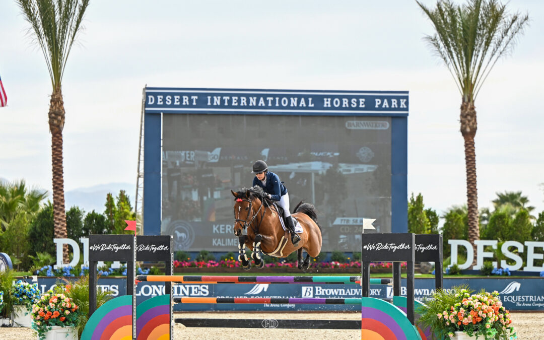 Thermal, CA – March 5, 2025 – For the third time in less than a month, Keri Potter and Kalimera van de Nethe Z are making headlines at the Desert International Horse Park. On Wednesday, March 5, the pair picked up their fourth major win of the 2025 Desert Circuit, topping the $10,000 Barnwalkers 1.35m Welcome Speed.