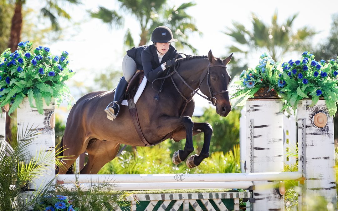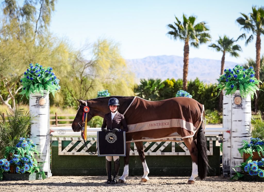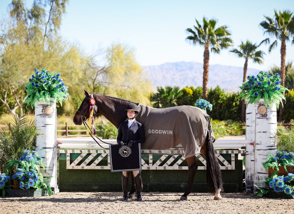 Thermal, Calif. – Ellie Aitchison just made the move up to the 3’6” Junior Hunters during Desert Circuit 5, but a few weeks in, she and her large junior hunter, Dominion, are already clinching championships together – including during this week’s Desert Circuit 7.