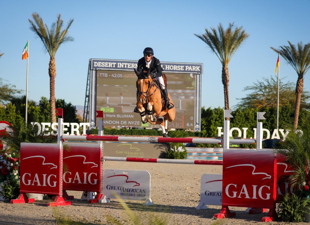 Thermal, Calif. – Daniel Bluman had a feeling that Landon de Nyze would be well suited for his cousin, Mark Bluman, and that perception proved to be correct on Thursday, December 11, at Desert International Horse Park. In only their second show together, Colombia’s Mark Bluman piloted Landon to victory in the $182,000 Great American Insurance Group CSI5* Qualifier, held as part of Desert Holiday 2.