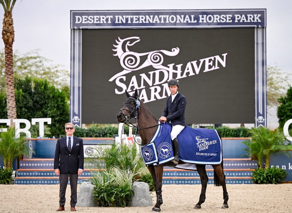 Thermal, Calif. – CSI3* competition at Desert Circuit 6, presented by Premier Equestrian, opened with a win for Mathijs van Asten on Wednesday, February 11. Van Asten piloted Orlando van de Afspanning to the top spot in the $32,000 Sandhaven Farm CSI3* 1.45m Welcome Speed to kick off the week at Desert International Horse Park in Thermal, Calif.