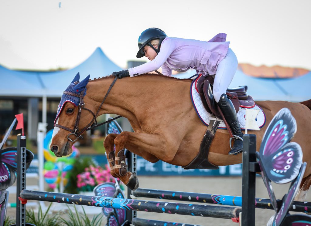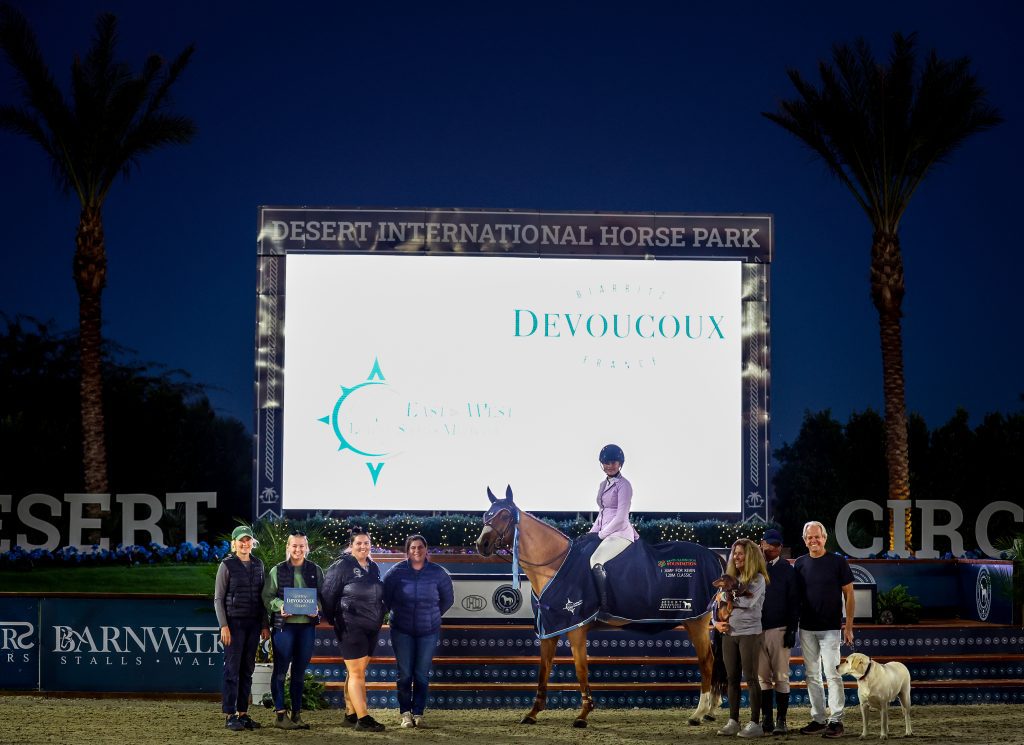 Thermal, Calif. – Michelle Berry and Traver’s Girl HS have been partnered for eight years, and in that time, they have amassed quite the list of wins at the 1.20m height. Newly added to that list is a victory in the $2,500 Kevin Babington Foundation 1.20m, sponsored by East-West Equine Sports Medicine and Devoucoux and held on January 16 during Desert Circuit 2.
