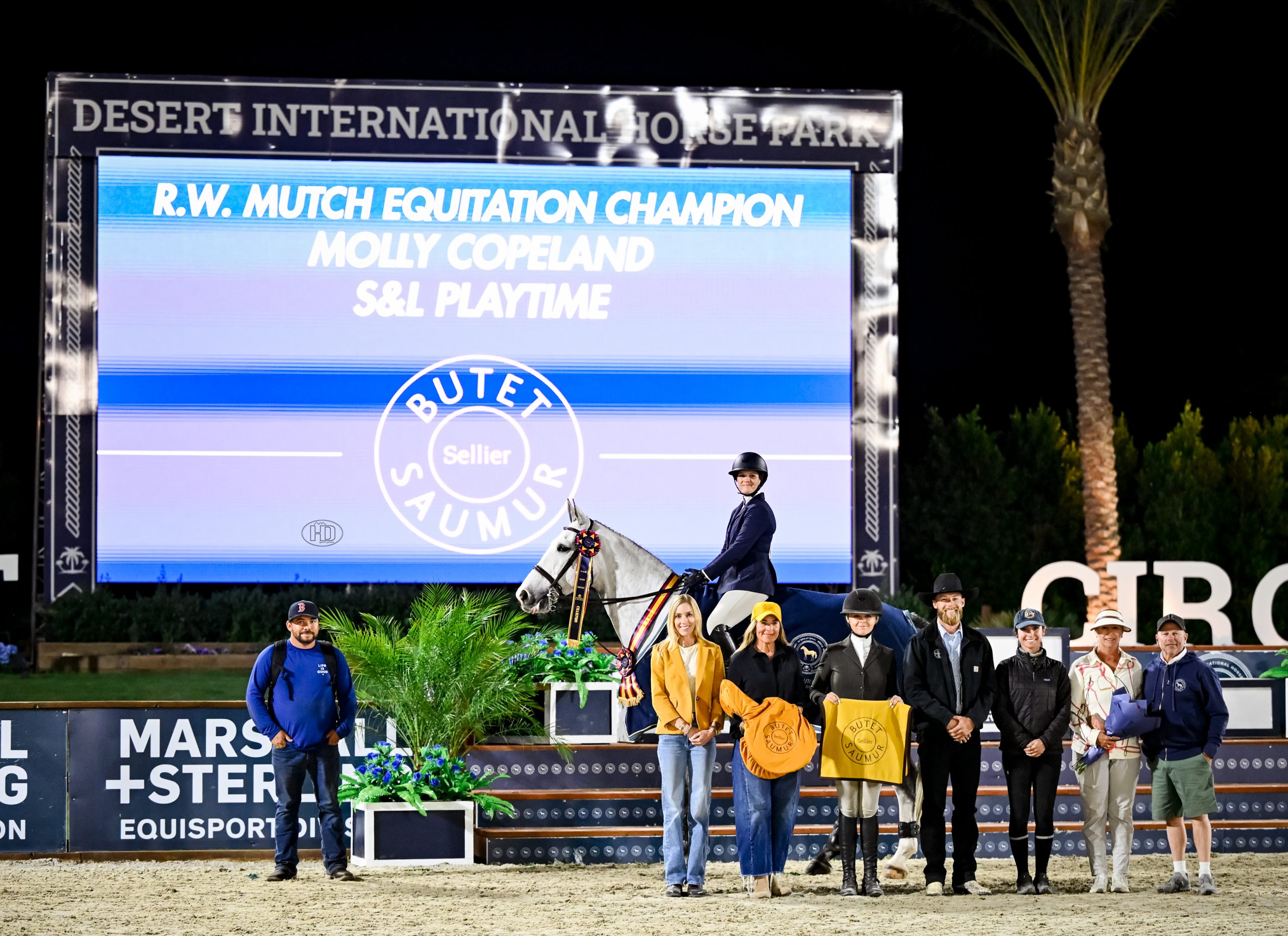 Thermal, Calif. – With two exemplary rounds, Molly Copeland led the R.W. Mutch Equitation Championship, sponsored by Butet, from beginning to end to take home the win on Saturday, March 7, at Desert International Horse Park.
