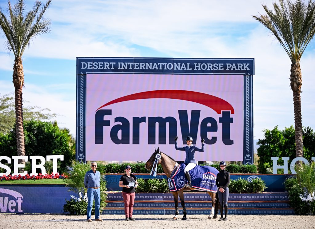 Thermal, Calif. – Jamie Sailor and Monarch made their last class of 2025 a memorable one as they jumped to victory in the $40,000 FarmVet 1.45m Open Classic on December 14, to close out Desert Holiday 2 at Desert International Horse Park.