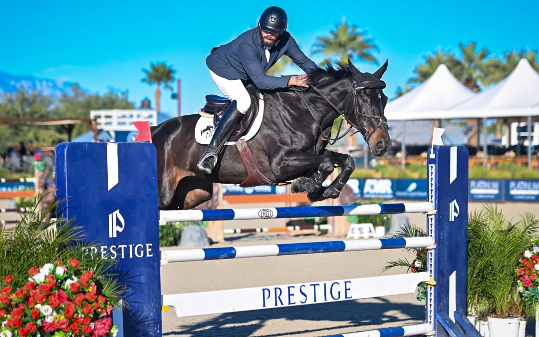 Thermal, Calif. – Patrick Billes and Espartano LS are no strangers to speed class success at Desert International Horse Park, and the pair is back again this year to already add to their winning resume. They picked up the first victory of Desert Circuit 2 with the fastest time in the $10,000 Prestige Italia 1.35m Welcome Speed held on Wednesday, January 14.