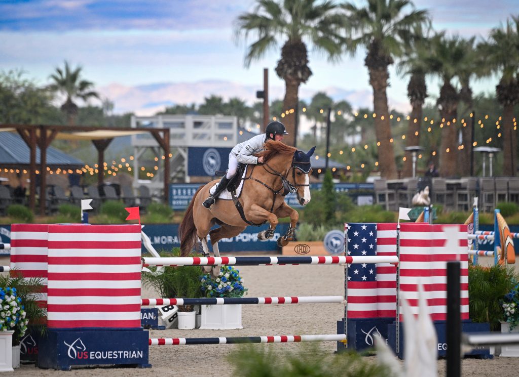 Thermal, Calif. – Simon Schroeder sped away with the first win of the 2026 Desert Circuit on Wednesday morning, January 7, at Desert International Horse Park. The German rider piloted Desir du Chanu to victory in the $5,000 Perfect Products 1.35m Welcome Speed to kick off the new year in Thermal, Calif.