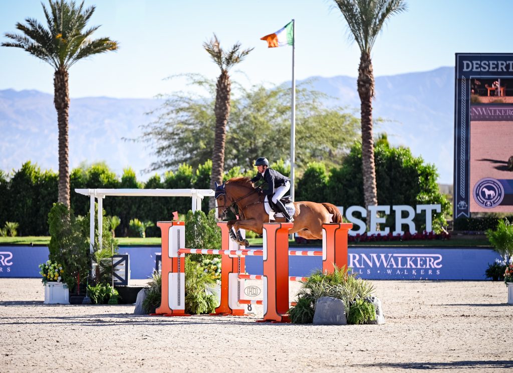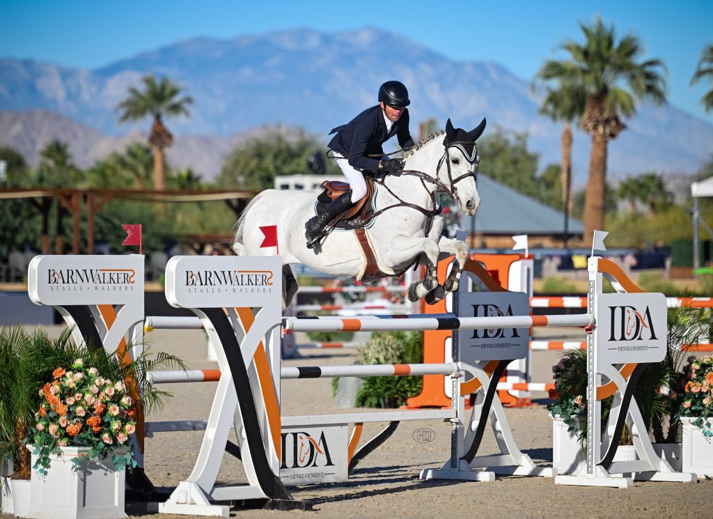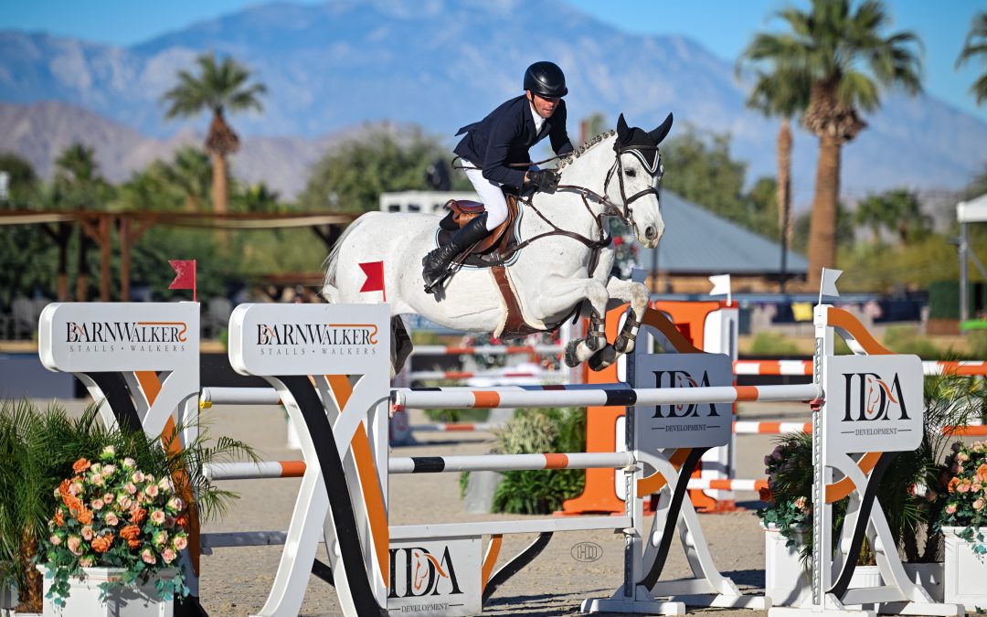 Thermal, Calif. – A field of 75 entries took on Wednesday’s $10,000 Barnwalkers 1.35m Welcome Speed, but not one of them could catch Simon Schröeder. He kicked off Desert Holiday 2 at Desert International Horse Park with a one-two finish in the December 10 opening class.