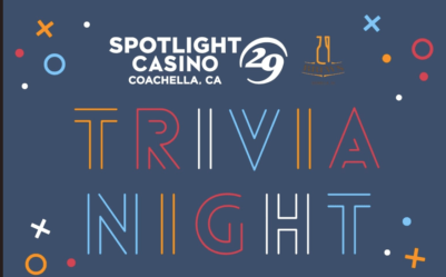 Join us for weekly trivia hosted by Dacoda Miracle. Teams can have a maximum of 6 members. Extra prizes this week provided by Spotlight 29 & 29 Brews! |