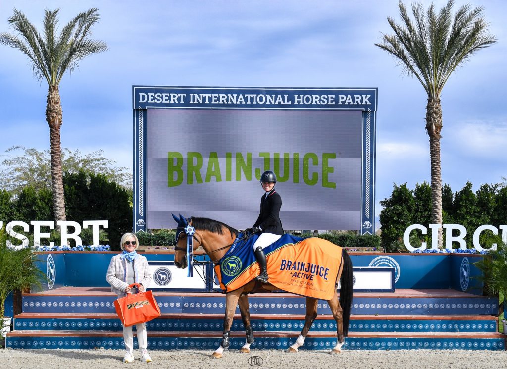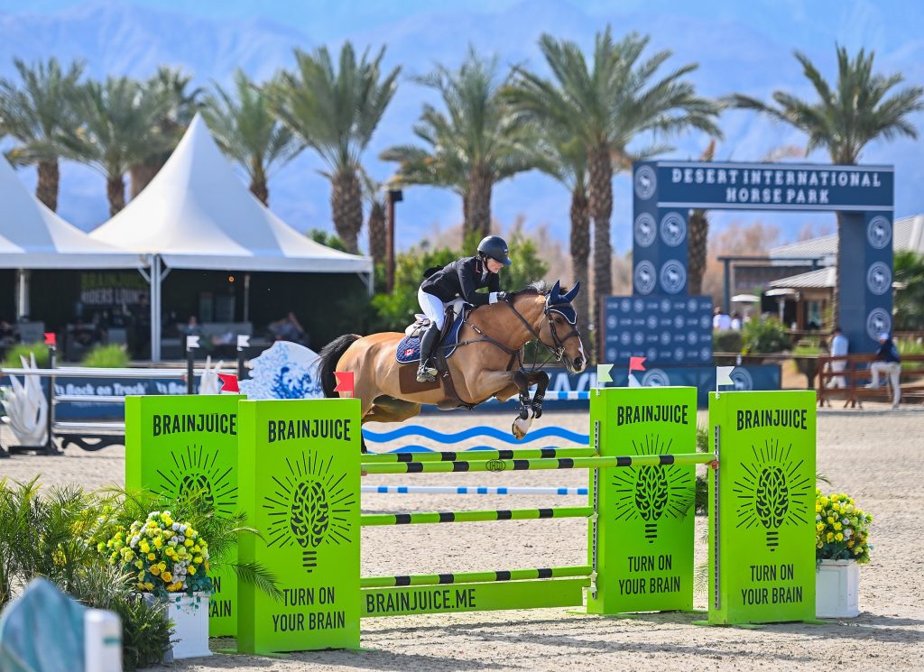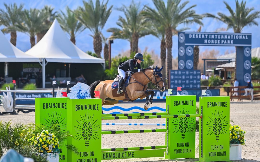 Thermal, Calif. – Canada’s Vanessa Mannix calls Lehar her “bona fide good boy,” and the gelding certainly lived up to that nickname on Thursday, February 12, at Desert International Horse Park. The duo topped a competitive 12-horse jump-off to win the $32,000 BRAINJUICE Active CSI3* 1.45m Classic at Desert Circuit 6, presented by Premier Equestrian.