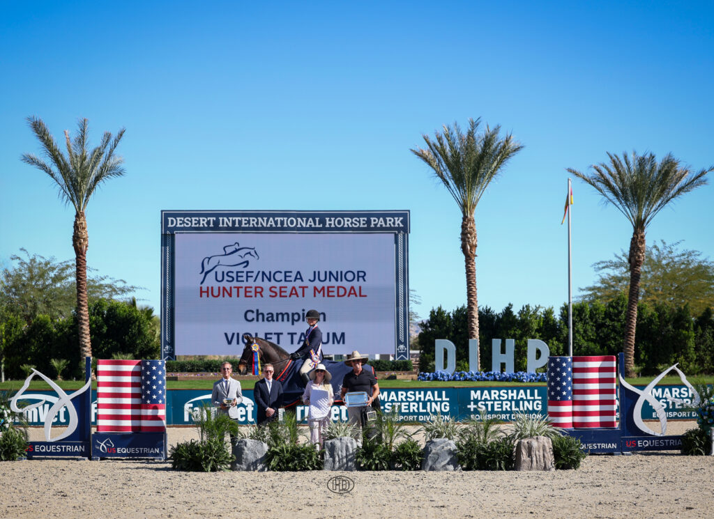 THERMAL, Calif. – In 2024, Violet Tatum made the top 10 of the USEF/NCEA Junior Hunter Seat Medal Final – West, but a minor error in the flat phase kept her from of advancing to the top four and the bracket phase. After that, Tatum made improving her results in the class a goal, and on Sunday, November 9, at Desert International Horse Park, she did just that.