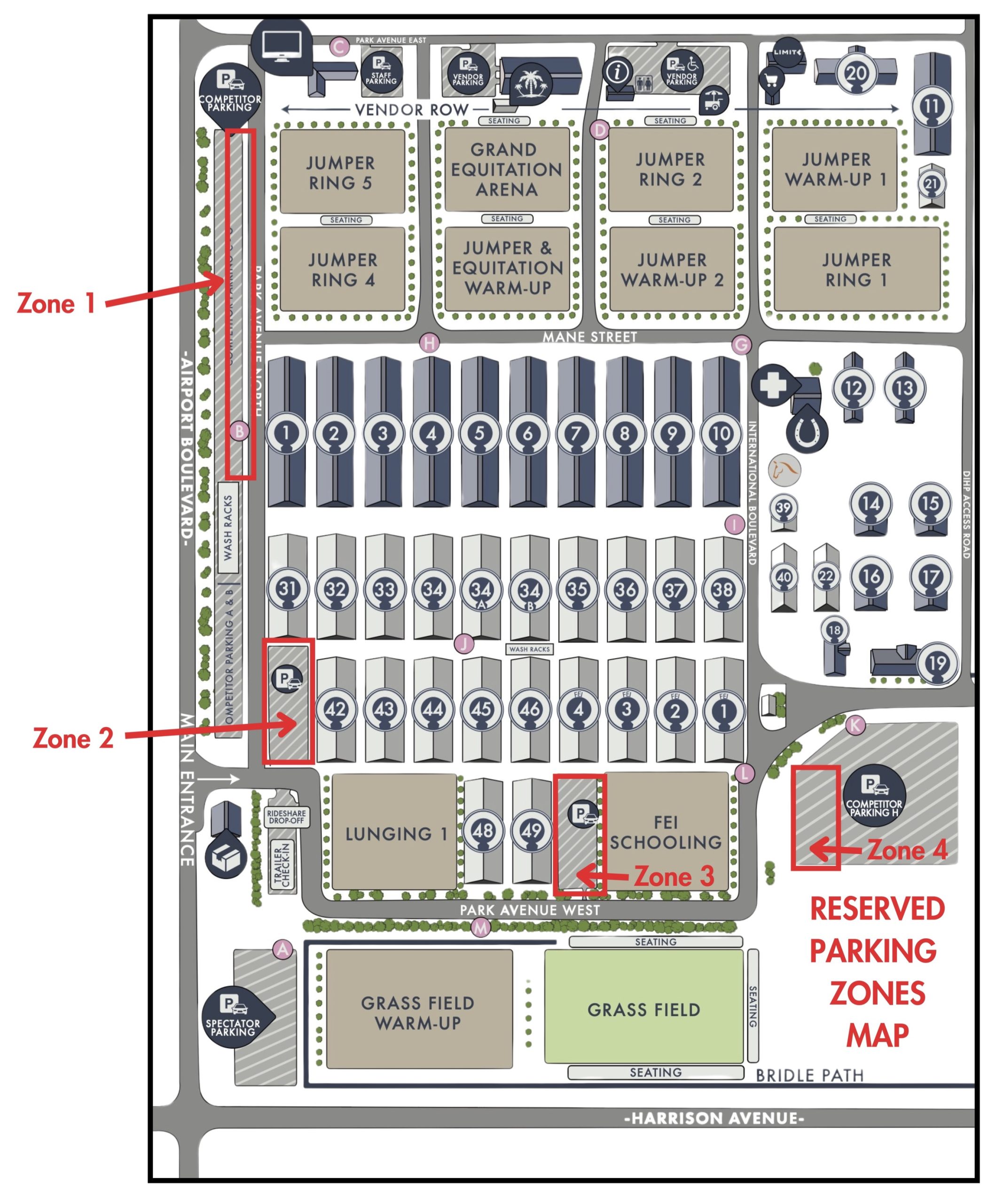 - Zone 4 – in the newly expanded exhibitor parking lot just beyond FEI schooling